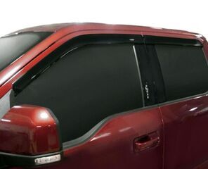 Allow fresh air in and keep rain, snow, road spray and wind out with a set of Low-Profile Side Window Deflectors (p/n: VML3Z-18246-K) for Ford F-150 SuperCrew. These premium deflectors let some fresh air in while keeping the rain and mist outside. Great for smokers, dog lovers and people who ride with stinky people in inclement weather a lot.