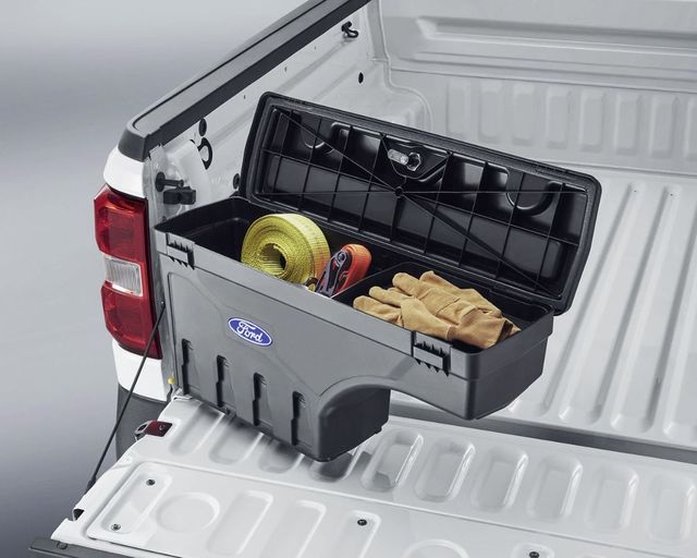 If you're looking for better storage in your Ford Maverick, look no further than this handy pivoting storage box (p/n: VNZ6Z-17N004-A) that attaches to the left side of the bed. This handy dandy storage box fits in that awkward little area between the wheel well and the back of the bed making the most efficient use of your space. Secure your tools, emergency supplies, or really anything you need to secure when you're away from your truck in this lockable box. Need to get in there and look around? Swing this box out nearly 180 degrees with 1.5 cu. ft. of lockable storage and everything is right at hand!