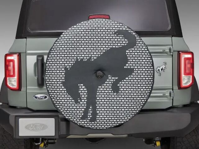 - Includes one Sasquatch #2 35" Spare Tire Cover (R2DZ-9945026-G) for Ford Bronco featuring the bucking bronco logo